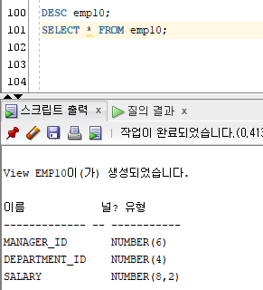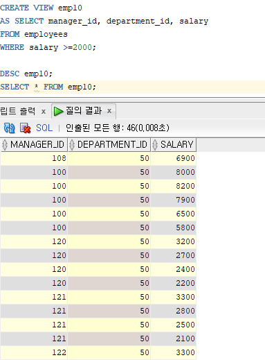 위의 2사진 테이블(emp10과 emplp)을 조인해서 만들었음.