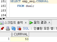 SELECT 시퀀스이름. CURRVAL을 사용해 현재 시퀀스 순번을 출력합니다.
