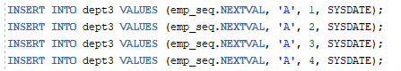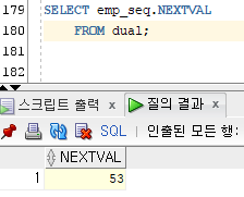 SELECT 시퀀스이름.NEXTVAL을 사용하여 일련번호를 생성할 수 있음