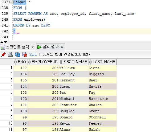 ROWNUM 를 통해 위와 같이 사용 가능(별칭을 이용해서)