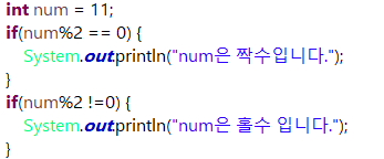 조건식에는 true, flase 값을 반환하는 연산식이나 boolean 변수가 올 수 있음.