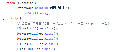 위의 클래스의 경우에는 생성된 객체를 역순으로 닫아줘야 함!!!